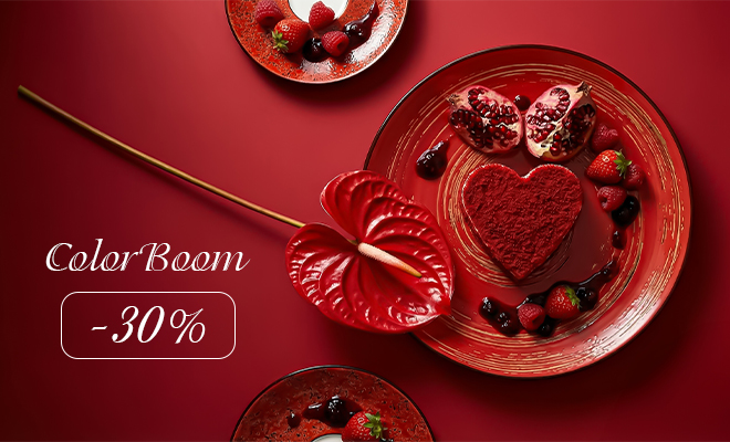 Дарим –30% на всю яркую коллекцию цветной посуды. Выберите свой оттенок чувств – от страстного до нежного. Соберите свою палитру любви.