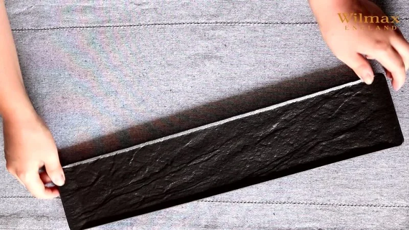 Black dishes by WILMAX outwardly resemble fashionable slate products, but in fact the main material is porcelain with a natural stone texture, covered with a matte black glaze, which adds durability to pieces. The dishes are scratch-resistant, and the colour does not fade over time. The new collection was created for the original presentation of any dishes and is ideal for decorating various interiors in styles: country, rustic, minimalism and many others.